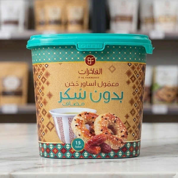Indulge in the rich traditions of Middle Eastern confectionery with Millet Maamoul Asawer | معمول الدخن أساور, brought to you by the trusted brand Al Fakherat. Available exclusively at Souq al Fresh, this delightful treat is a perfect fusion of heritage and flavor, crafted to bring joy to your everyday moments.
