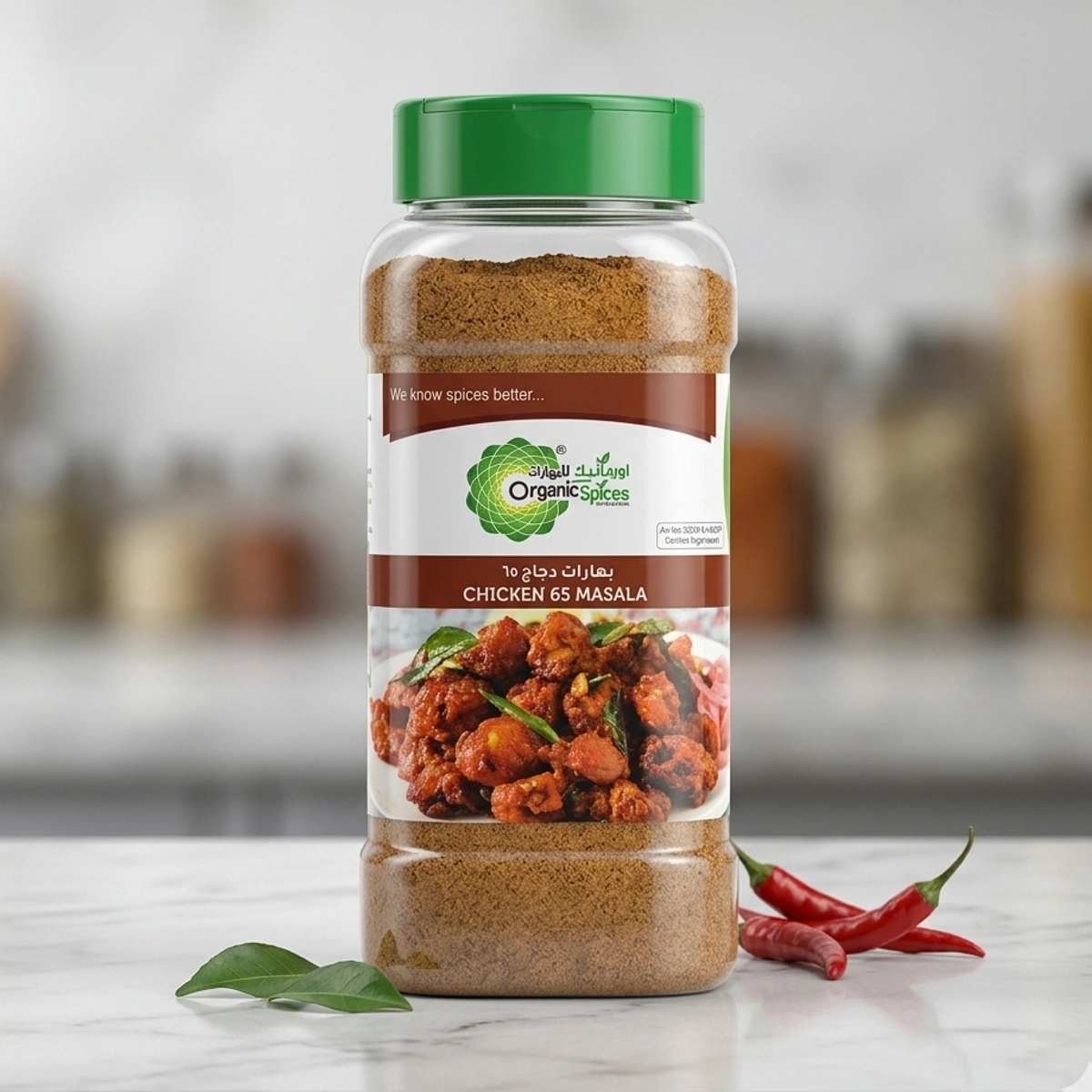 Transform your cooking into a culinary masterpiece with Chicken 65 Masala | بهارات دجاج 65, exclusively available at Souq al Fresh. Crafted by the trusted brand Organic Spices, this premium blend of authentic spices is the secret to recreating the bold, fiery flavors of the classic Chicken 65 dish in your own kitchen.