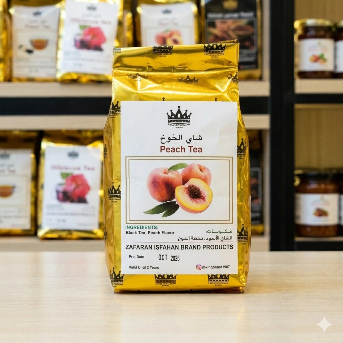 Indulge in the vibrant and refreshing taste of Peach Tea, brought to you by the trusted Zafaran Isfahan Brand. Exclusively available at Souq al Fresh, this expertly crafted tea blend combines the bold essence of black tea with the sweet, juicy aroma of peach flavor—creating a harmonious drink that’s perfect for any time of day.